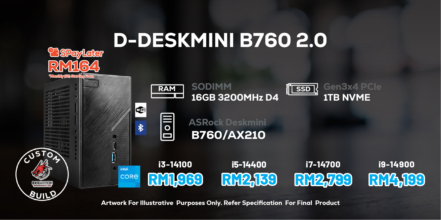 Barebone : ASRock DeskMini B760/AX210 Barebone PC [INC CHASIS, MOBO, PSU, COOLER]