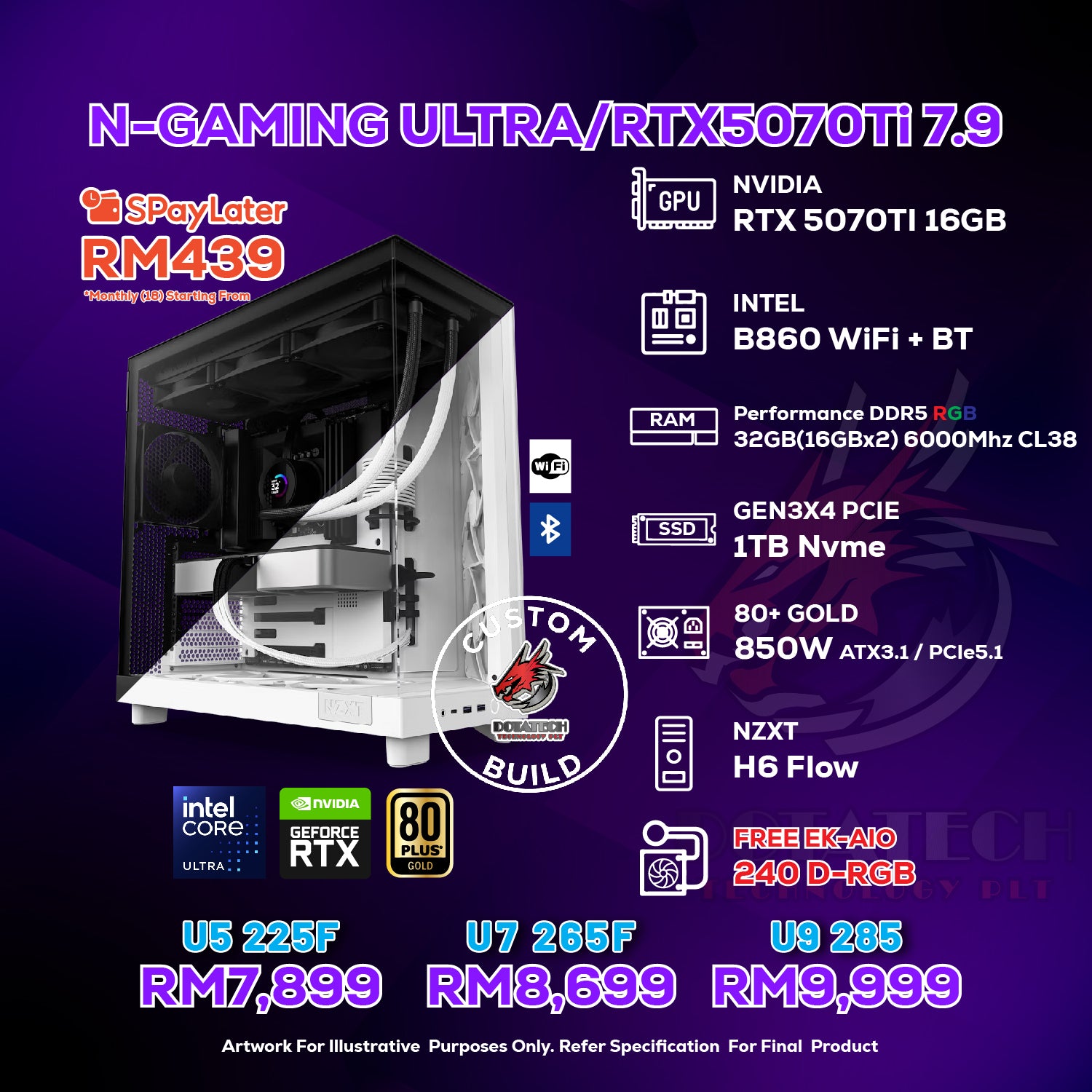 PSU : 850W 80Plus Gold ATX3.1 (PCIe5.1) PSU